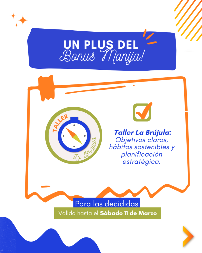 Además, vas a tener acceso al Taller La Brújula, un espacio práctico para ordenar tus proyectos, clarificar hacia dónde estás y traducirlo en pasos concretos.